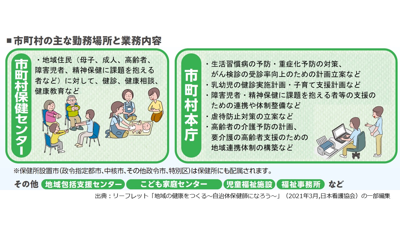 このように保健師の活躍の場は多岐にわたり、それぞれの求められる役割や働き方等様々ですが、今回は自治体で働く保健師についてご紹介します。