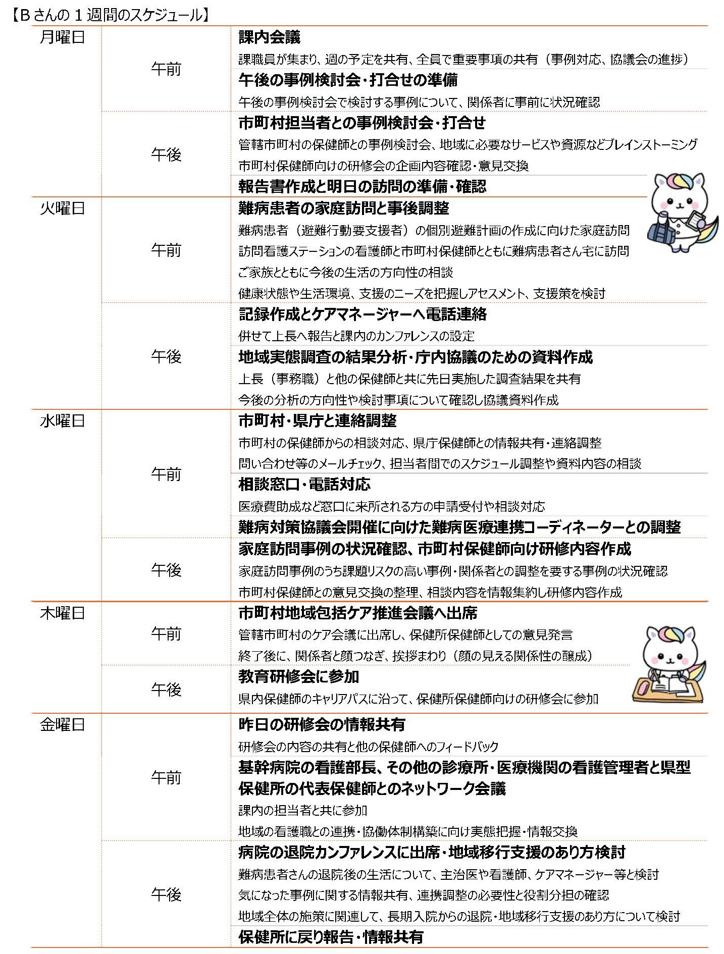 例えば、保健師が地域の様々な課題を解決する能力を高めるために、職場における支援や指導を通して能力を積み上げていけるよう、OJTと研修を組み合わせた育成が行われています。